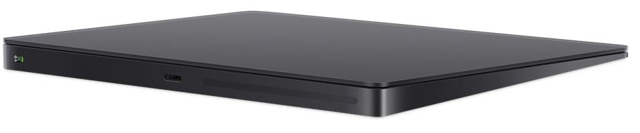 Дизайн. Тонкий всего 1 см в самом широком месте. Белый и тёмно-серый. Выполнен из стекла – невероятно приятный на ощупь. По сравнению с предыдущим поколением площадь трекпада увеличилась на 30% - 12*16 см. При этом конструкция тонкая, что позволяет легко «передвигаться» по различному контенту специальными жестами прокрутки.