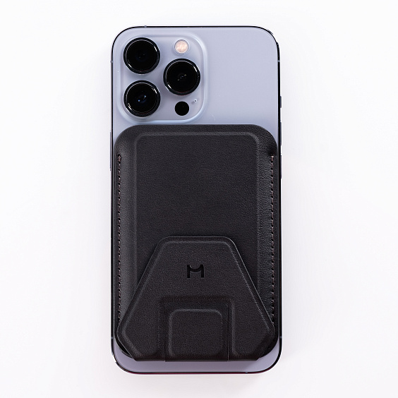 Надежное магнитное крепление класса N52 Совместимость с MagSafe Вмещает до 3-х пластиковых карт Складная многофункциональная подставка