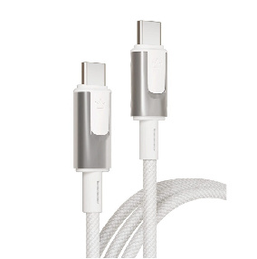 Надёжный и прочный кабель в нейлоновой оплётке с коннекторами из цинкового сплава. Поддерживает быструю зарядку Power Delivery до 100 Вт (20V/5A) и передачу данных до 480 Мбит/с. Не ломается на сгибах, устойчив к износу. Совместим со всеми устройствами с разъёмом Type-C: ноутбуками, смартфонами, планшетами. Длина — 200 см. В комплекте — удобный ремешок из эко-кожи для хранения.