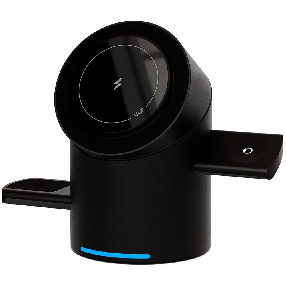 Оснащена поворотным механизмом, беспроводной зарядной панели MagSafe, которым можно управлять с помощью сенсорной кнопки, а также складными элементами зарядок для наушников и часов.