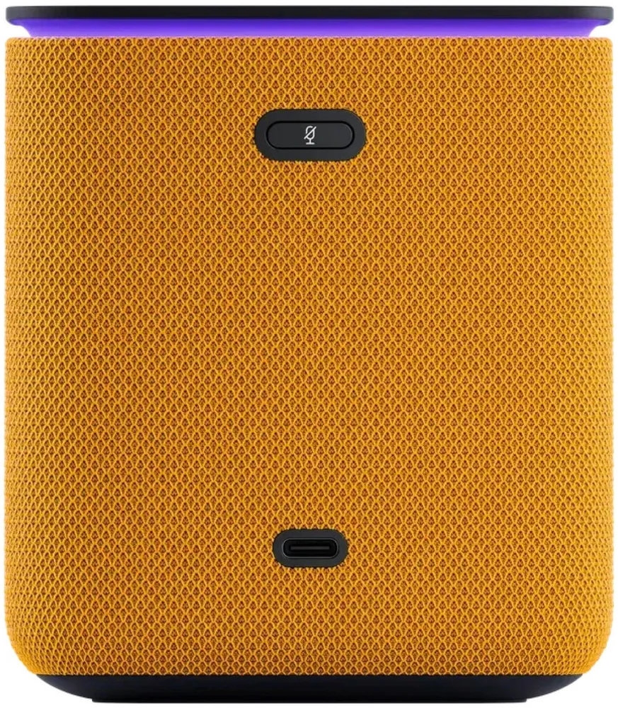 Элегантный корпус с тканевой отделкой доступен в разных цветах, что позволяет подобрать колонку под стиль вашего дома. Тканевая поверхность не только добавляет эстетики и приятных тактильных ощущений, но и выполняет защитную функцию для динамиков, слегка смягчая звучание. Встроенный дисплей, органично встроенный в текстильную часть, эффектно светится, добавляя устройству нотку современного дизайна.