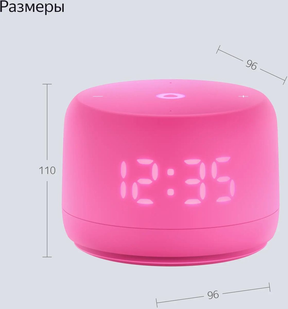 На информативном LED-дисплее отображаются такие полезные данные, как текущее время, температура в комнате и установленные таймеры. Кроме того, экран оживляет взаимодействие с колонкой, показывая «эмоции» Алисы в виде анимации. Индикаторы на корпусе светятся разными цветами в зависимости от того, говорите вы или молчите, что добавляет устройству выразительности.