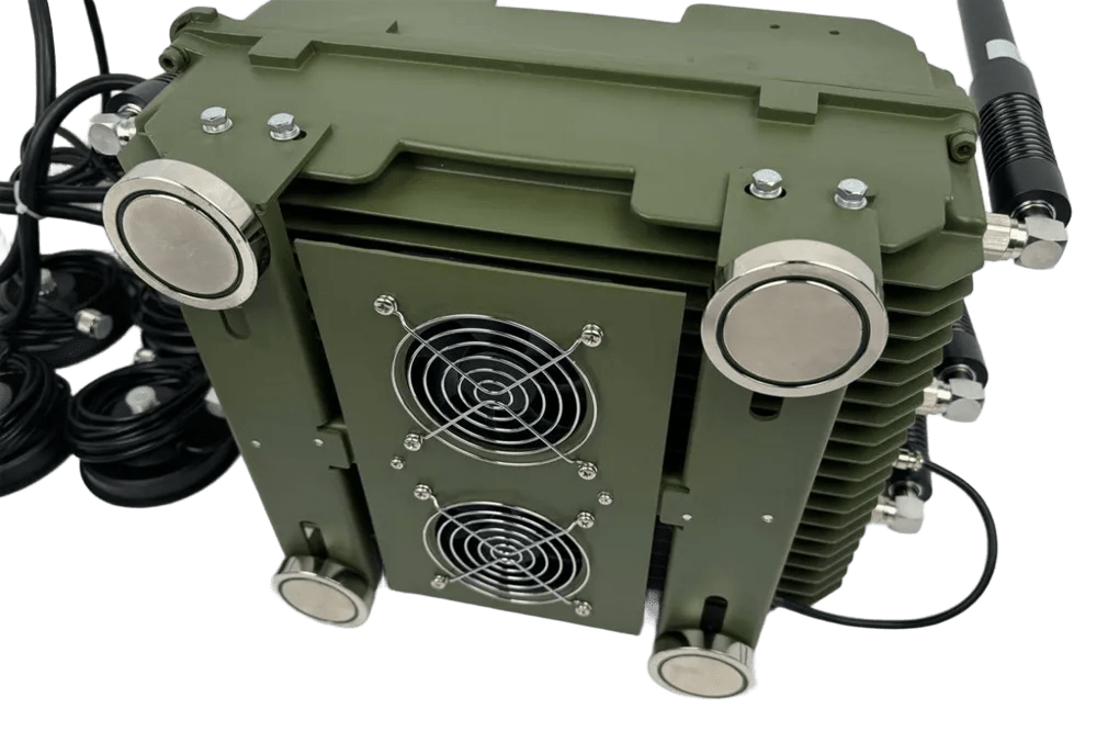 Очень популярная модель для всех видов легких и тяжелых автотранспортных средств из всех известных брендов подавителей БПЛА и FPV дронов. Устройство размещено в противоударном алюминиевом, стойком к погодным условиям корпусе с выносными антеннами.