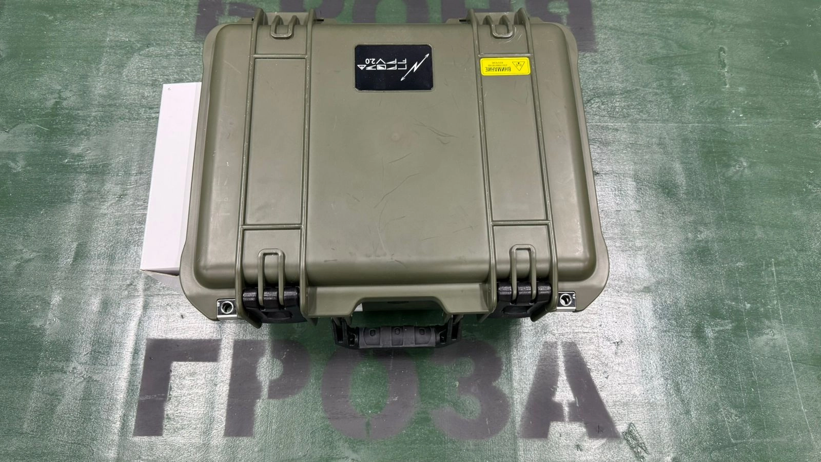 Подавитель БПЛА «Гроза ФПВ 2.1» представляет собой защищённый и полностью герметичный кейс в оливковом цвете. Предназначен для подавления перепрошитых и базовых FPV дронов. Органы управления представляют собой тумблер включения подавления и кнопку включения индикатора заряда АКБ.