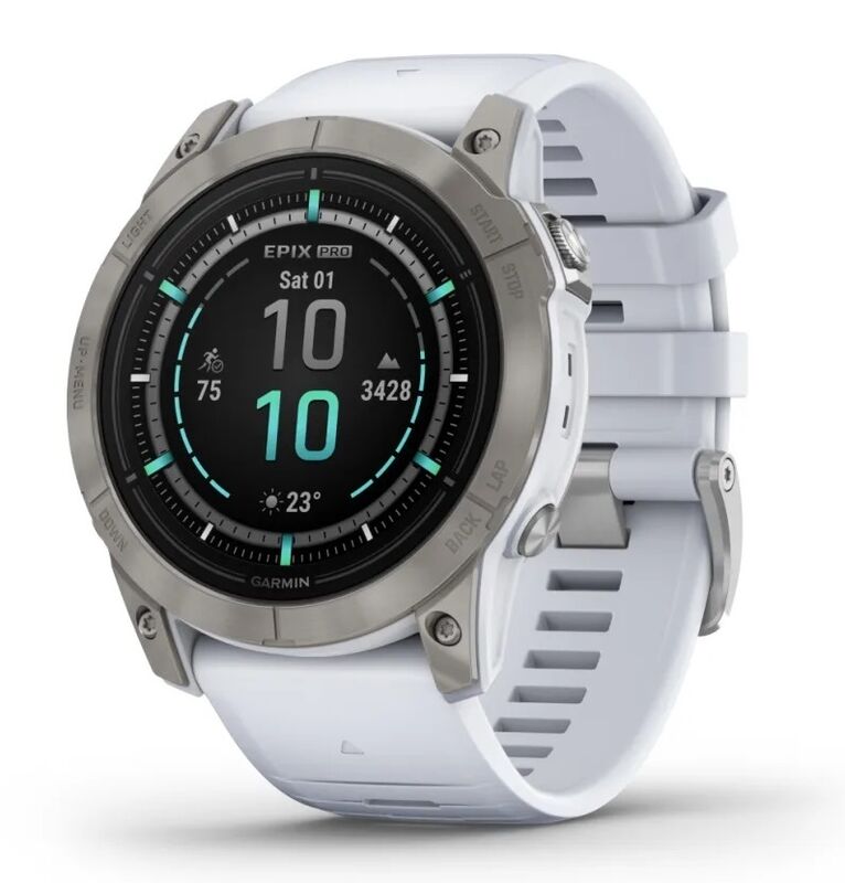 Смарт-часы Garmin Epix Pro (Gen 2) Sapphire Edition - 51 mm, Титановый белый, светло-серый безель с DLC-покрытием, белый силиконовый ремешок