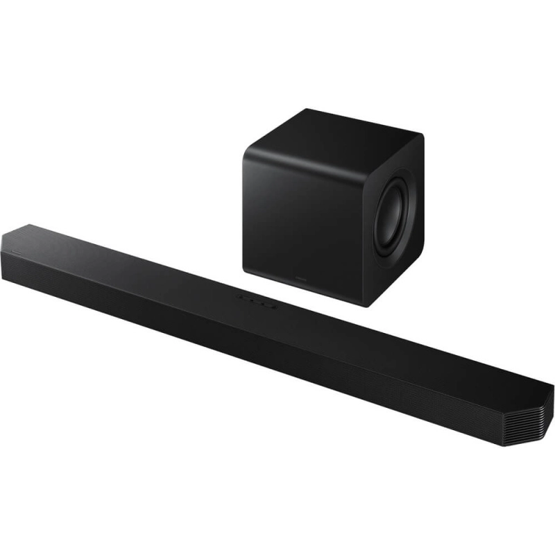 Саундбар поддерживает подключение к телевизорам Samsung через Wi-Fi или Bluetooth. Это обеспечивает синхронное воспроизведение аудио и видео, создавая целостный и захватывающий эффект просмотра.